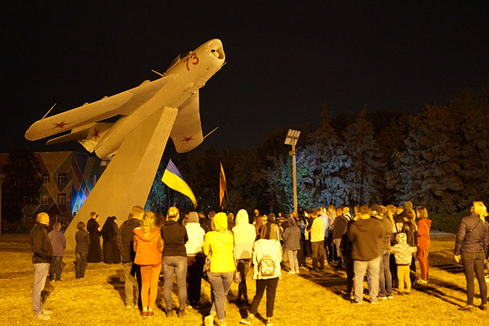 Вечером 27 сентября в Краматорске, у памятника "Самолет", прошла гражданская панихида по жертвам авиакатастрофы под Чугуевым, в результате которой погибли 19 курсантов и 7 офицеров Харьковского национального университета Воздушных сил имени Ивана Кожедуба.