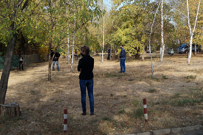 На фото: очередь на прием к врачу 13 октября на заднем дворе 3-й поликлиники. Люди соблюдают безопасную дистанцию