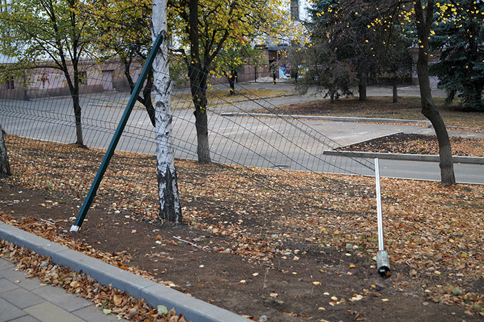 Сквер "Лабиринт" в самом центре Краматорска, снова испытал на себе разгул безвестных вандалов. Громить хрупкие светильники-столбики, которые давно уже не горят вовсе, обезьянам в человечьем обличье стало уже неинтересно, поэтому пришел черед металлической поверхности, на которой предполагалось размещать работы художников.