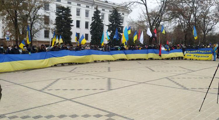 На Донеччині у Краматорську сьогодні зібралися патріотично налаштовані люди з різних міст області, щоб відзначити це свято. Виступали учасники Майдану в Києві та Донецьку. Виступали учасники російсько-української війни. На заході був розтягнутий величезний прапор України.