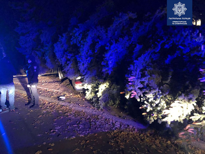 Как сообщает Патрульная полиция, около половины ночи 21 ноября в самом центре Краматорска произошло ДТП, в результате которого была снесена многолетняя ель.
