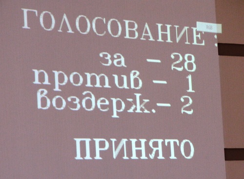 Итог голосования был предсказуем еще до начала обсуждения вопроса. В зале присутствовало 37 зарегистрированных депутатов, голосование выглядит так: