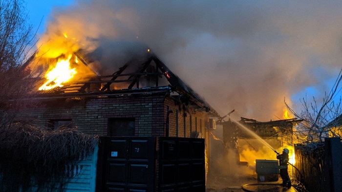 Прибыв на место вызова, бойцы 12-го Государственного пожарно-спасательного отряда выяснили, что пожар происходит горение кровли дома на площади 170 кв. м. Также огнем была охвачена летняя кухня.