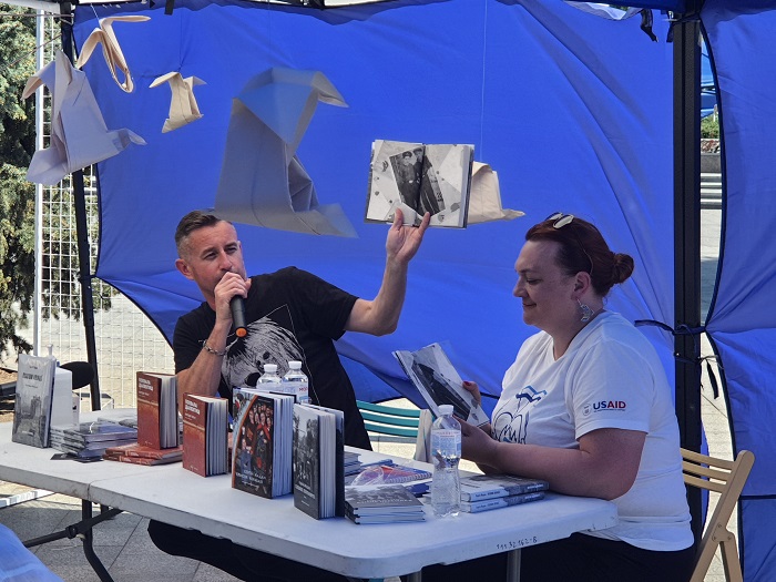 Украинский писатель, поэт и волонтер Сергей Жадан презентовал 16 мая в Краматорске новый поэтический сборник «Псалом авиации» в рамках литературно-художественного фестиваля «Калюмиюс».