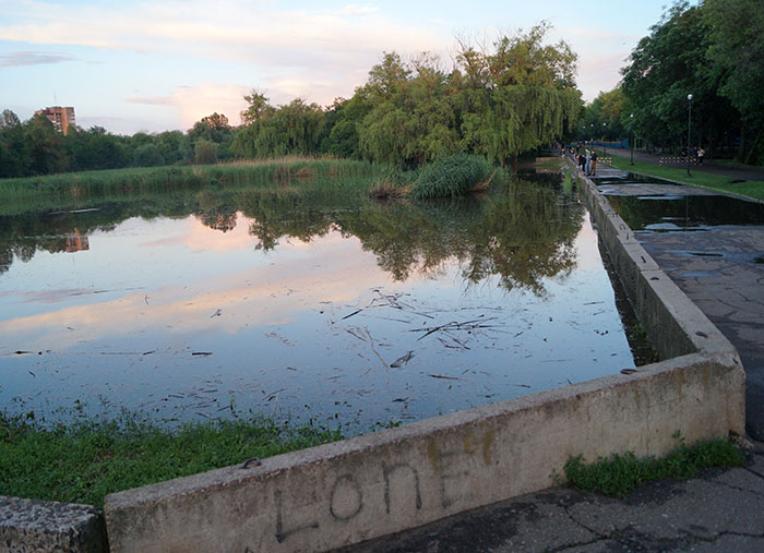 Сильнейшие дожди нескольких последних дней, и особенно сегодняшнего, 8 июня, привели к тому, что озеро в краматорском парке "Юбилейный" переполнилось водой.