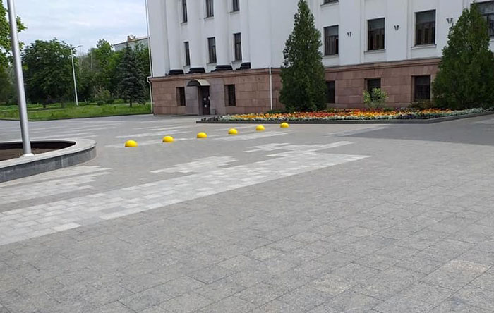 Фотофакт: у здания ДКиТ НКМЗ в центре Краматорска ограничили проезд автотранспорта