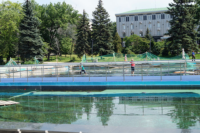 Несмотря на то, что у краматорчан есть причины беседовать с подрядчиком если не на повышенных тонах, то с точки зрения потерпевшей стороны, сегодняшнее общение с руководством ООО "Монолит Центр" носило, скорее, примирительный характер. Тем более что ряд аргументов, которые выдвинул Евгений Мусиенко, действительно, имеют под собой смысл. Так, например, Евгений Мусиенко заявил, что его подрядная организация, выполняя работы, четко придерживалась проектной документации, предоставленной УКСом исполкома. По его словам, возможные проблемные моменты стали ясны уже во время работ, но заказчик не позволял отступать от проектных документов, по всей видимости, исходя из выделенных на объект бюджетных средств. В результате, вместо желаемой облицовочной плитки, чашу фонтана просто покрасили, а неглубокое залегание подающих воду труб стало вызывать трещины на дне фонтана почти сразу после окончания ремонтных работ.