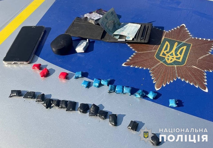 Во время патрулирования одного из пригородов, сотрудники Полка полиции особого назначения «Киев» обратили внимание на молодых парней, поведение которых вызвало подозрение. Полицейские не ошиблись: оказалось, что 21-летний краматорчанин имел при себе 26 свертков с, предварительно, психотропным веществом «соль». Кроме того юноша указал места, где он оставлял свертки с "солью" для своих клиентов. При осмотре в указанных местах, полицейские обнаружили 10 таких «кладов». Еще 84 свертка и весы парень хранил по месту своего проживания.