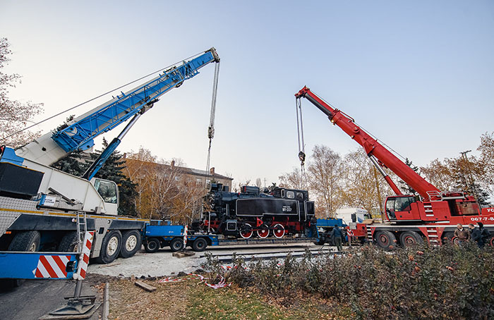 Паровоз уже занял положенное ему место. Ожидается, что официальное открытие памятника произойдет 4 ноября, в День железнодорожника.