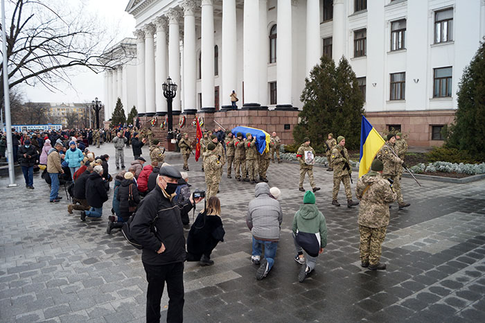 Сегодня, 4 декабря, на центральной площади Краматорска прошла церемония прощания с бойцом-гранатометчиком 93-й Отдельной механизированной бригады "Холодный яр" Валерием Геровкиным, который был застрелен вражеским снайпером 1 декабря на позициях близ Новотроицкого.
