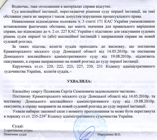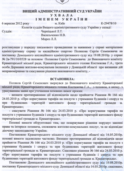 Копия решения, принятого Высшим административным судом Украины: