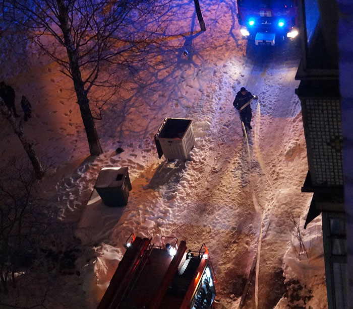 Прибыв на место вызова, спасатели установили, что пожар происходит в квартире на 1-м этаже девятиэтажного дома. В помещении наблюдался огонь и плотное задымление в квартире. А возле дома был обнаружен пострадавший мужчина, 1969 года рождения, который после осмотра медицинскими работниками "скорой помощи" был госпитализирован.
