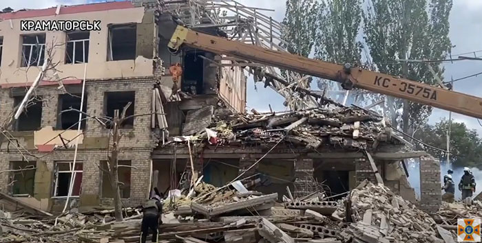 У Краматорську з-під завалів зруйнованої внаслідок російського обстрілу школи рятувальники вилучили тіло чоловіка.