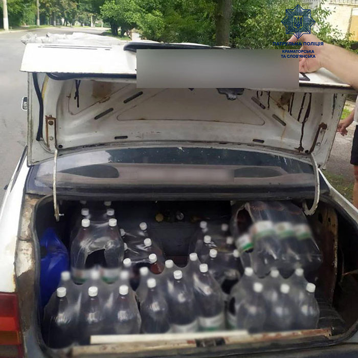 При поверхневій перевірці в салоні транспортного засобу патрульні побачили 48 пляшок алкогольного напою.