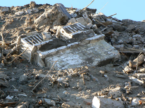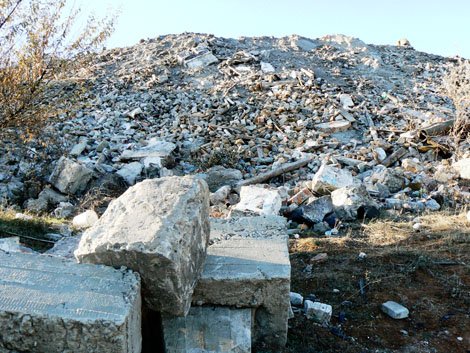 Впрочем, найти место, куда свозится строительный мусор, оказалось делом совсем простым. Чуть выше пересечения улицы Ленина с бульваром Краматорским, поворот налево, 100 метров между частными гаражами – и глазу открывается грандиозная свалка. В крошеве из кусков бетона, обломков стен с характерными молодежными «граффити», и деревянных обломков копошатся люди. Это – те самые граждане, у которых «в хозяйстве все сгодится». Отбирают более-менее целый кирпич, складируют листы колотого шифера, выдирают из бетона железо, собирают в кучу годное для печи дерево…