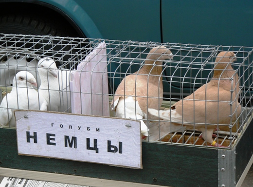 В то же время, приток публики подтягивает сюда торговцев другой живностью: здесь и кролики, и собаки, и куры-гуси, и павлины, и фазаны, и даже флегматичные нутрии. Плюс торговля сопутствующими товарами - клетки, корма, средства ухода...Возможно, впору говорить о переформатировании выставки из голубиной в более универсальную?