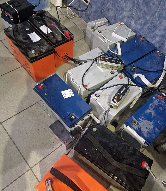 "Заправляємо генератори. Заряджаємо аккумулятори, що розрядилися та веземо на вузли та вручну затягуємо на 5 ,9 або 14 поверх... - пише Микола Кучерук. - Кожні 80 мотогодин замінюємо масло у генераторах....