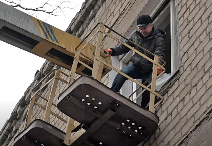 Під'їзд розкурочило, скрізь уламки, вікон немає. Подружній парі довелося підійматися на третій поверх будинку за допомогою крана. Де з великими незручностями та невеликим ризиком все ж таки вдалося винести те, навіщо вони повернулися. Про це повідомляють «Новини Донбасу».