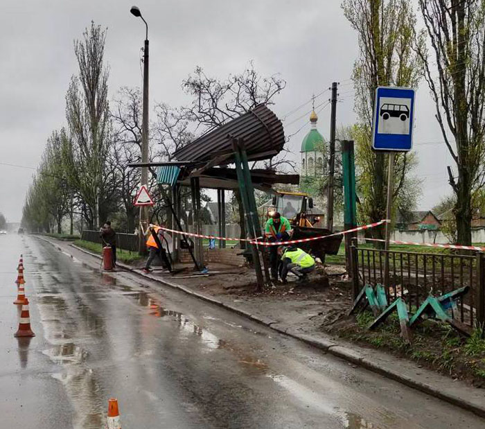 Пошкоджену внаслідок ракетного ударуросійських терористичних військ зупинку громадського транспорту в районі ЗОШ №20 довелось прибрати. Про це повідомляє Відділ інформаційної політики міськради.