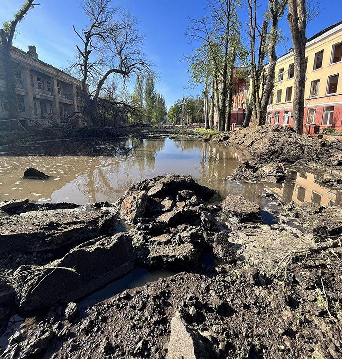 Голова військової адміністрації міста Олександр Гончаренко поділився у Facebook фотографіями наслідків обстрілу.