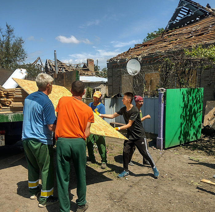 Управлінням житлово-комунального господарства організовано видачу наборів для тимчасового швидкого ремонту мешканцям , оселі яких було пошкоджено в результаті обстрілу з боку росії.