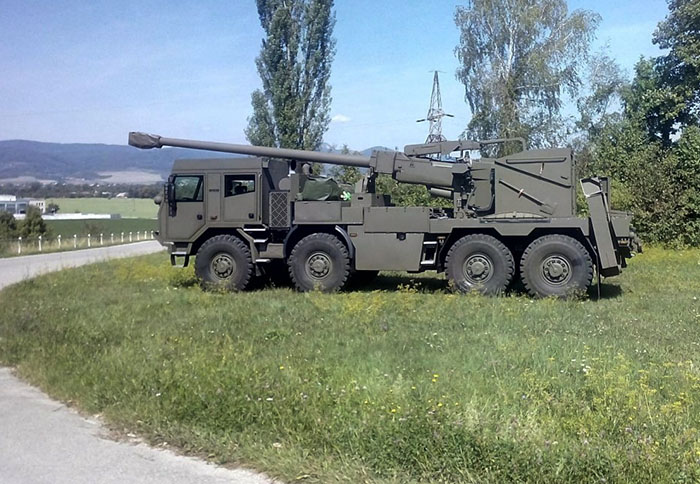 І фактично мова йде про відриту артилерійську установку модифікованої хитної частини від САУ Zuzana 2 у калібрі 155-мм та з довжиною ствола у наразі еталонні 52 калібри. Дальність пострілу снарядами із покращеною аеродинамікою та донним генератором ERFB-BB на рівні 41 км.
