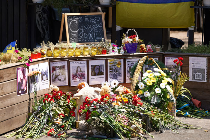 27 червня ракета російських окупантів цинічно забрала життя у молоді, у дітей та їх батьків - 13 людей загинули, 60 отримали поранення. Неможливо уявити весь біль батьків та близьких загиблих. росія вже 9 років поспіль має на меті знищення української ідентичності та всього живого, що є в наших містах. Цей обстріл — черговий доказ того, шо росія —країна-терористка, яка має понести покарання за кожний злочин.