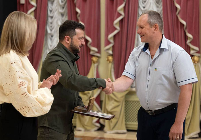 Президент України Володимир Зеленський та перша леді Олена Зеленська взяли участь у врученні нагороди глави держави «Національна легенда України». Цього року її присудили восьми людям, деяким посмертно.