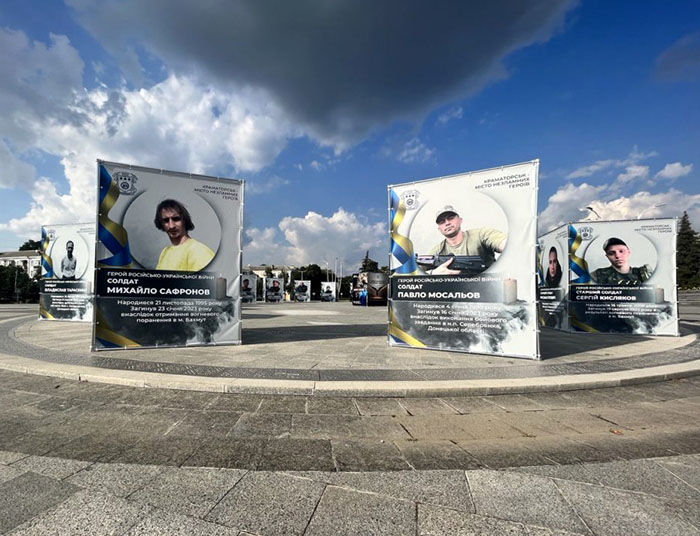 29 серпня – День пам’яті загиблих захисників України. З нагоди відзначення цієї памʼятної дати у Краматорську встановили конструкції, на яких зображене Небесне військо краматорців, які віддали найдорожче — своє життя, боронячи територіальну цілісність та незалежність України.