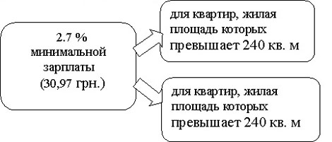 Что касается ставок налога, то их размер за 1 кв.м жилой площади утверждается для каждого населенного пункта решением соответствующих сельских, поселковых и городских советов в процентах от минимальной заработной платы, законодательно установленной на 1 января отчетного года. Законом Украины «О Государственном бюджете Украины на 2013 год» от 06.12.2012 года № 5515 минимальная заработная плата с 1 января установлена в размере 1147 грн.