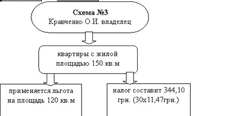 В данном случае на 120 кв.м ему будет предоставлена льгота, а за 30 кв.м ему нужно будет уплатить налог в сумме 344,10 грн. (30х11.47 грн.) (схема №3)
