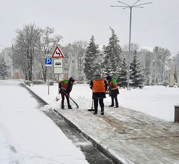 Комунальні служби працюють з очищення доріг та тротуарів.