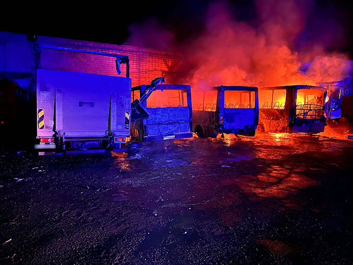 Як повідомляє у Facebook Головне управління ДСНС України у Донецькій області, у Краматорську рятувальники 12 державного пожежно-рятувального загону ліквідували загоряння 2 вантажних автомобілів та 3 автобусів.