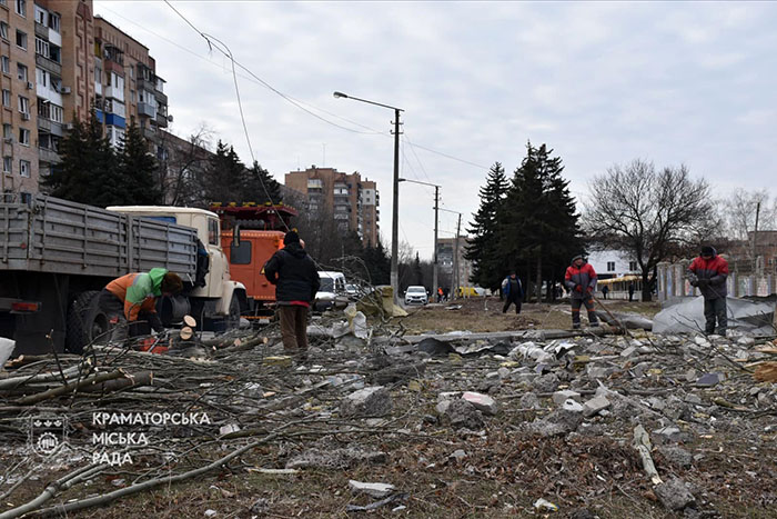 Краматорські комунальники з самого ранку працюють над ліквідацією наслідків ворожого обстрілу (на фото).