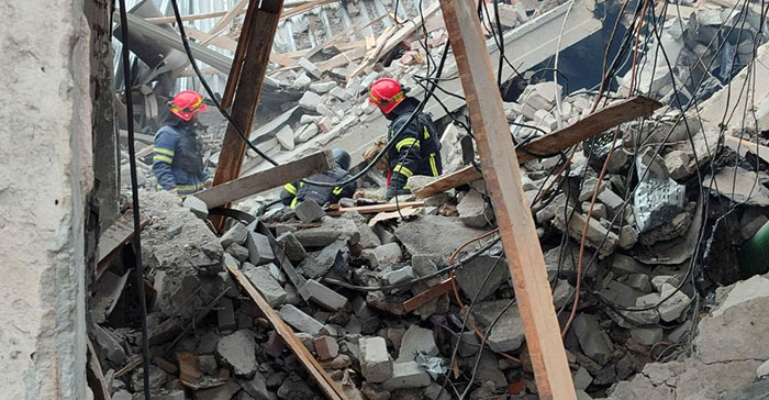 "8 людей зазнали поранень - шість жінок та двоє чоловіків, - пише він. - Наразі рятувальники продовжують розбір завалів. Під ними, ймовірно, ще може перебувати одна людина", - пише він.
