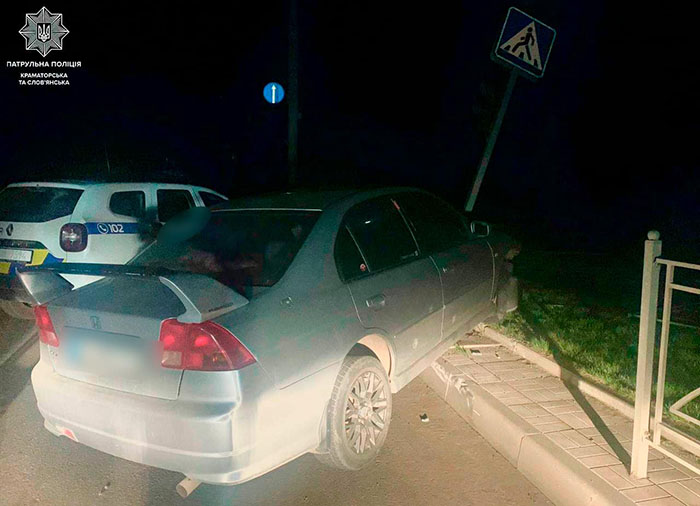 Водій автомобіля Honda Civik не дотримався безпечної швидкості руху, виїхав за межі проїзної частини та скоїв наїзд на перешкоду, а саме: дорожній знак зі світлофорним обладнанням.