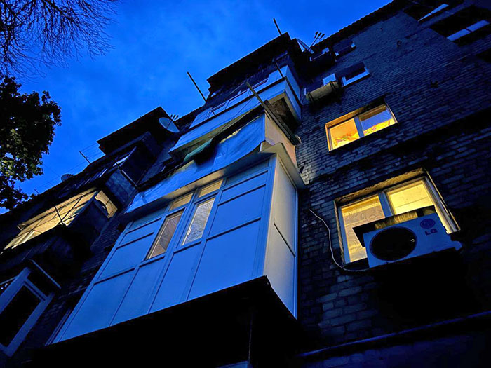 Сьогоднішні дощ та пориви вітру призвели до того, що у 5-поверхівці на вулиці Сіверській, 41 у Краматорську сталося обвалення скління балкона.