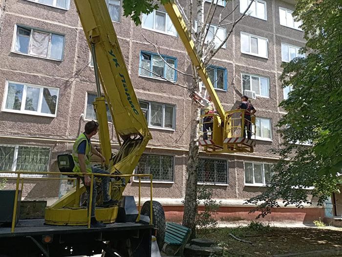 До роботи доводиться залучати спецтехніку - хоча це і доволі затратно, але необхідно при виконанні обрізки. Так само як і залучання вантажівок для подальшого вивезення спиляних гілок.