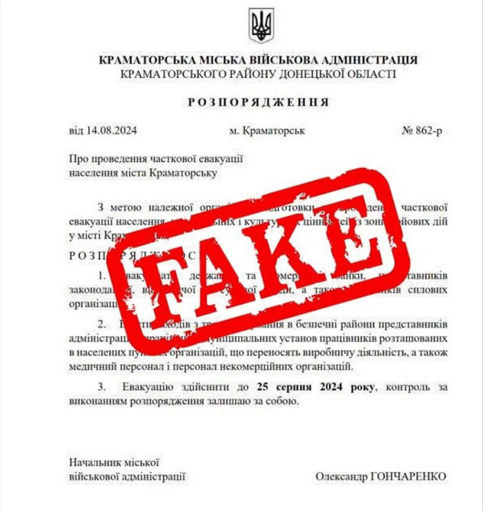 Сьогодні, 16 серпня, деякі Телеграм-канали, що мають цілком певну антиукраїнську спрямованість, опублікували, нібито, "документи з сайту міської ради Краматорська", в які йдеться про евакуацію установ і організацій міста.