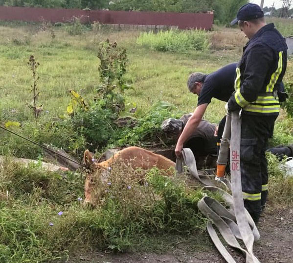 Вчора до Служби порятунку по допомогу звернулися небайдужі мешканці м. Краматорськ, які повідомили, що у яму глибиною 1,5 м впало теля та самостійно не може вибратися.