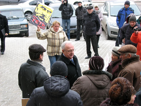Узнав, что сегодня депутаты городского совета намерены заслушать вопрос о сланцевом газе, сюда на митинг прибыли около сотни противников будущих разработок недр. Анатолий Близнюк мгновенно попал в кольцо граждан, которые потребовали от него, как от представителя власти, прекратить работы по разведке и добыче газа. В свойственной ему широкой манере, Анатолий Близнюк попытался было что-то объяснить и даже нарисовать что-то на одном из плакатов, однако обшщения не получилось. Речь политика постоянно прерывалась криками «Ганьба» и другими, далекими от дружелюбия, возгласами. Причем не остался в долгу и сам Анатолий Близнюк. Одному из митингующих он заявил: "Валяй отсюда"!