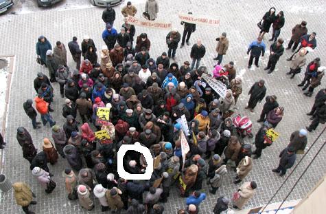 Анатолий Близнюк в кольце митингующих. Вид из окна горисполкома Краматорска.