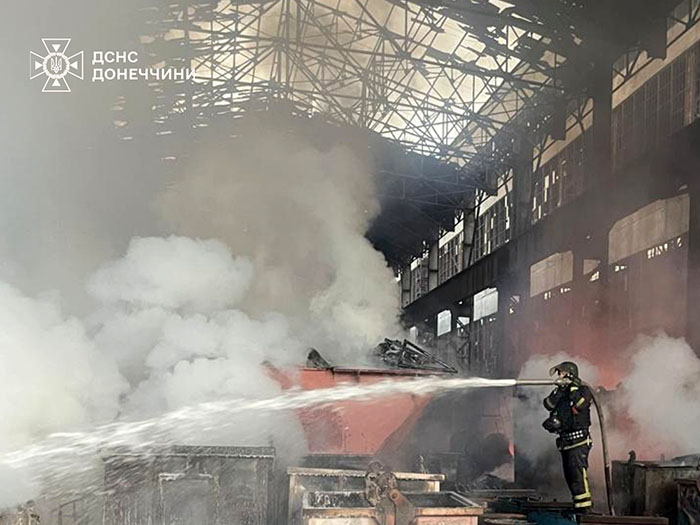 "Краматорськ: рятувальники ліквідували пожежу на території місцевого підприємства на площі 300 кв. м, спричинену ворожим ударом, - повідомило Головне управління ДСНС України у Донецькій області.
