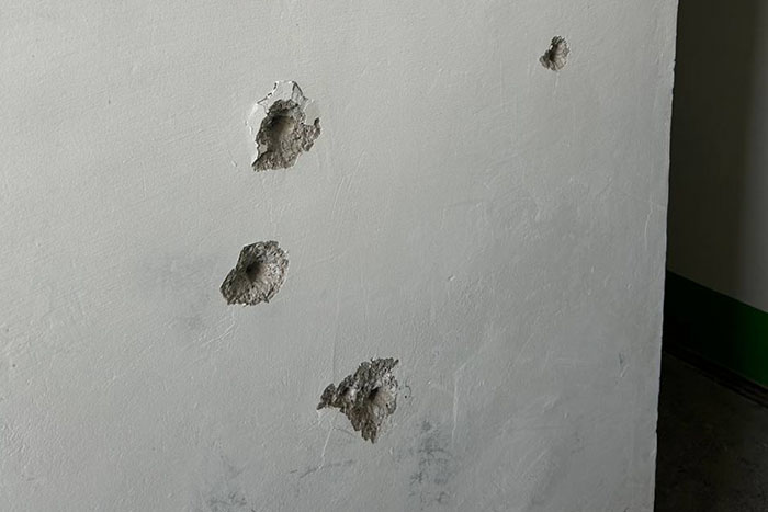 У під'їзді залишилися сліди від куль.