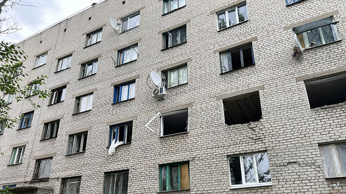 "Цей гуртожиток належить заводу НКМЗ. Ще понівечене скління, двері винесло, пошкоджені санвузли. Нам дали контейнер для вивезення сміття. Ми вивезли сміття, прибрали, де це можливо, і де можна заходити. Є аварійні ділянки. Конструктивні рішення будуть прийматись. Ще, думаю, будуть експертизи та огляди нашими будівельниками. Порушена цегляна кладка і в будь-який момент може стіна рухнути", — каже Людмила Левченко.