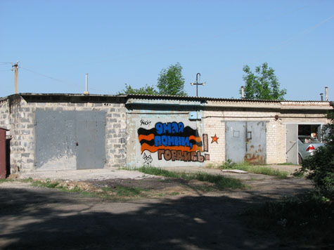 Утром 9 мая жители многоэтажных домов на самом верху улицы Ленина в Краматорске с изумлением обнаружили изменения в заоконном ландшафте. На одном из стандартных гаражей местного автокооператива засияло граффити, да какое!
