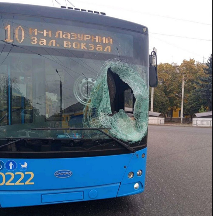 Колесо, що відлетіло з автомобіля, що рухалося зі швидкістю, пробило лобове скло міського тролейбуса в Краматорську. Про це сьогодні повідомили місцеві канали, супроводжуючи інформацію фотознімком.