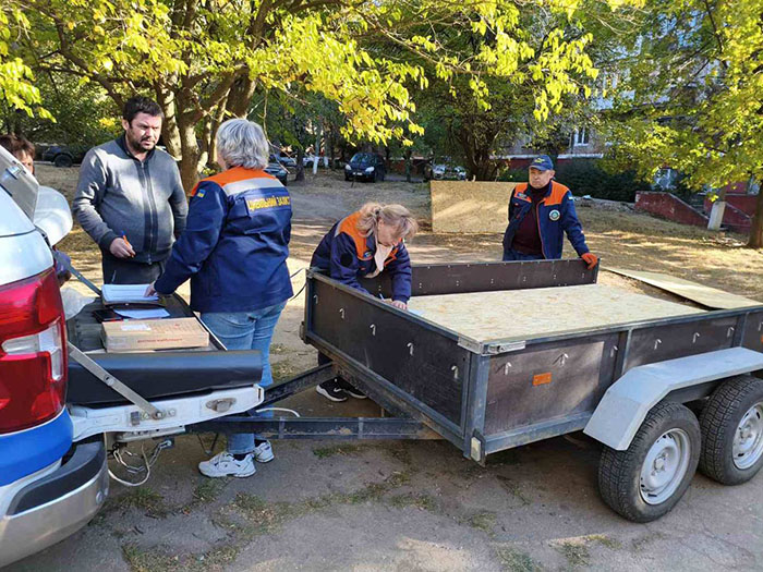 Фахівці управління з питань цивільного захисту Краматорської міської ради здійснюють видачу матеріалів для швидкого ремонту за адресами, де цієї ночі падали російські дрони.