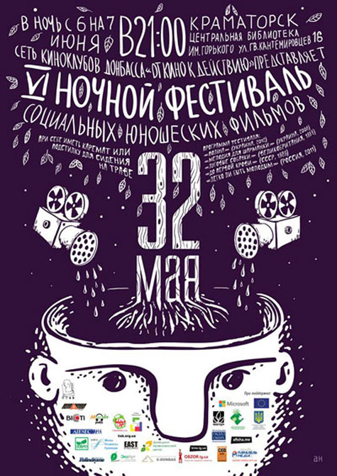 В ночь с 6 на 7 июня в Краматорске, у здания Центральной бибилиотеки, впервые пройдет очень необычное мероприятие - ночной кинофестиваль социальных юношеских фильмов "32 мая".