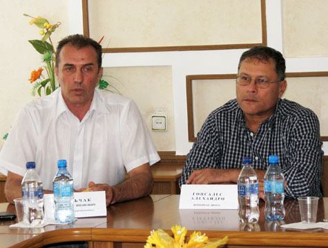 В пятницу 21 июня, в горводоканале Краматорска прошла пресс-конференция для журналистов местных СМИ с участием представителя немецкой фирмы «Гидроплан» Алехандро Гонзалесом (на фото справа). Разговор шел о перспективах городского водно-канализационного хозяйства, которое благодаря кредиту Мирового банка имеет шансы сделать в техническом отношении большой шаг вперед.